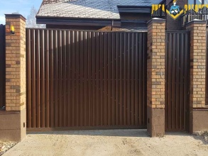 • Конструкция откатных ворот с кирпичными столбами