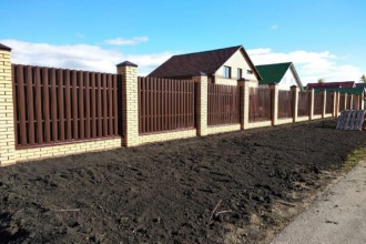 Компания «АрсеналЗаборов» производит установку под ключ забора из металлического штакетника с кирпичными столбами. Долговечность и надежность наших заборов побеспечена проверенными годами материалами. Узнать стоимость или оформить заказ Вы можете в режиме онлайн.